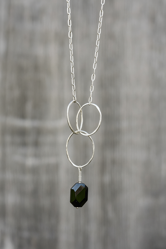 3-Link Hammered Silver Necklace with Black Faceted Bead Drop