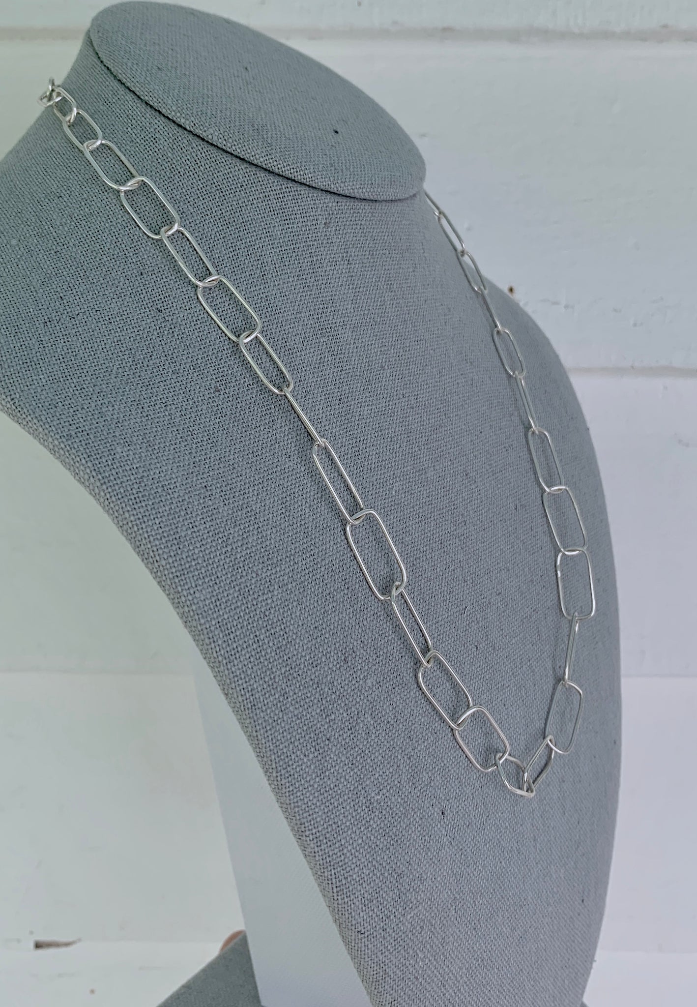The necklace is handmade to order in the studio from 18 gauge sterling silver one link at a time.